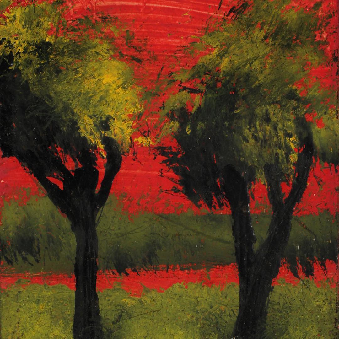 - Tree with upturned leaves in hurricane sky (1976). Oil on back of polaroid cartridge